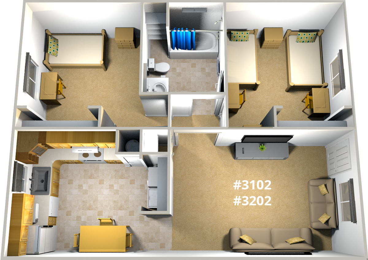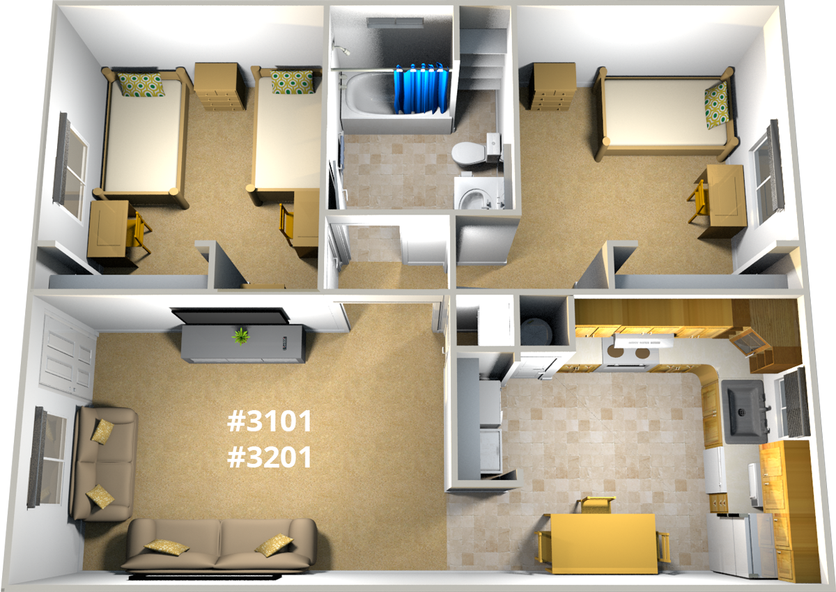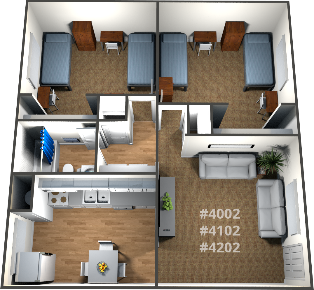 We offer a wide variety of accommodations to fit your needs. Private and shared rooms with three, four, five, six and twelve person apartments with a variety of floor plans. Click on a link or explore the map below for more information.